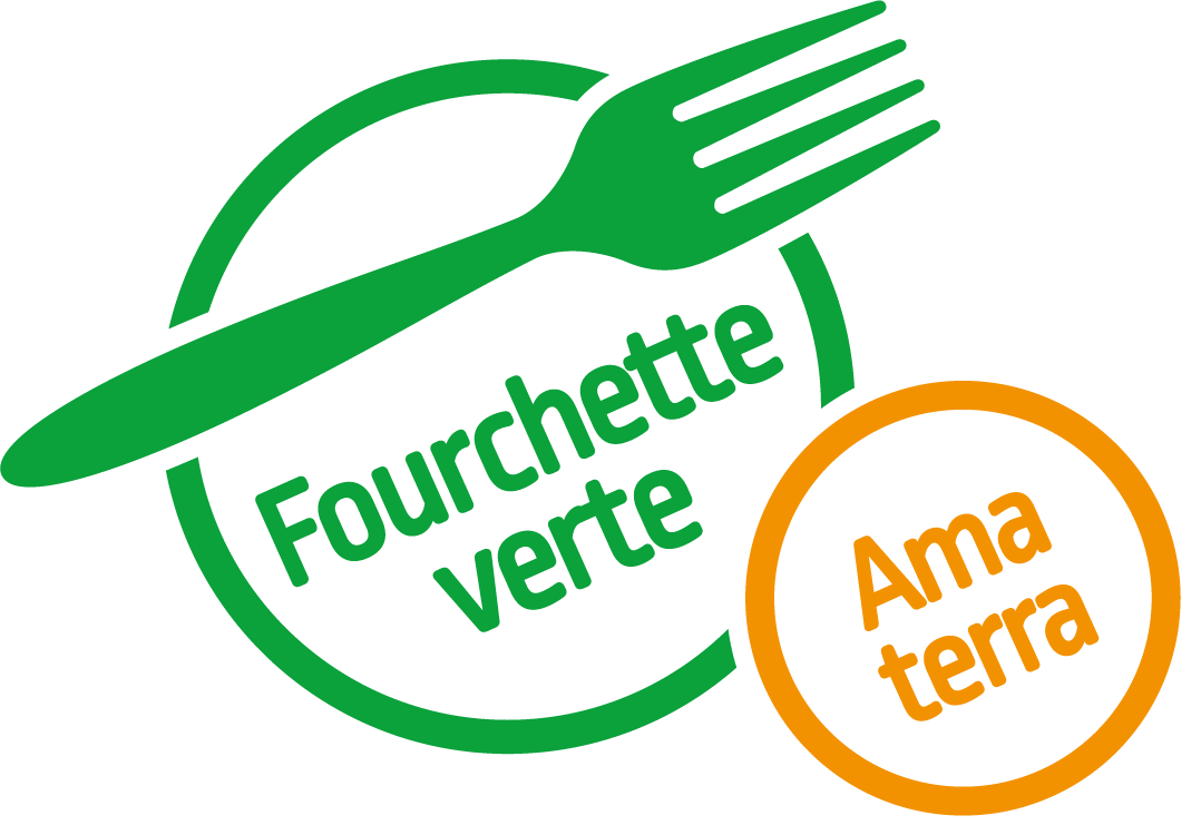 Oltre ai criteri nutrizionali del marchio Fourchette verte, il marchio Fourchette verte – Ama terra include criteri più approfonditi in materia di sostenibilità, atmosfera a tavola, scelta dei fornitori e provenienza degli alimenti.