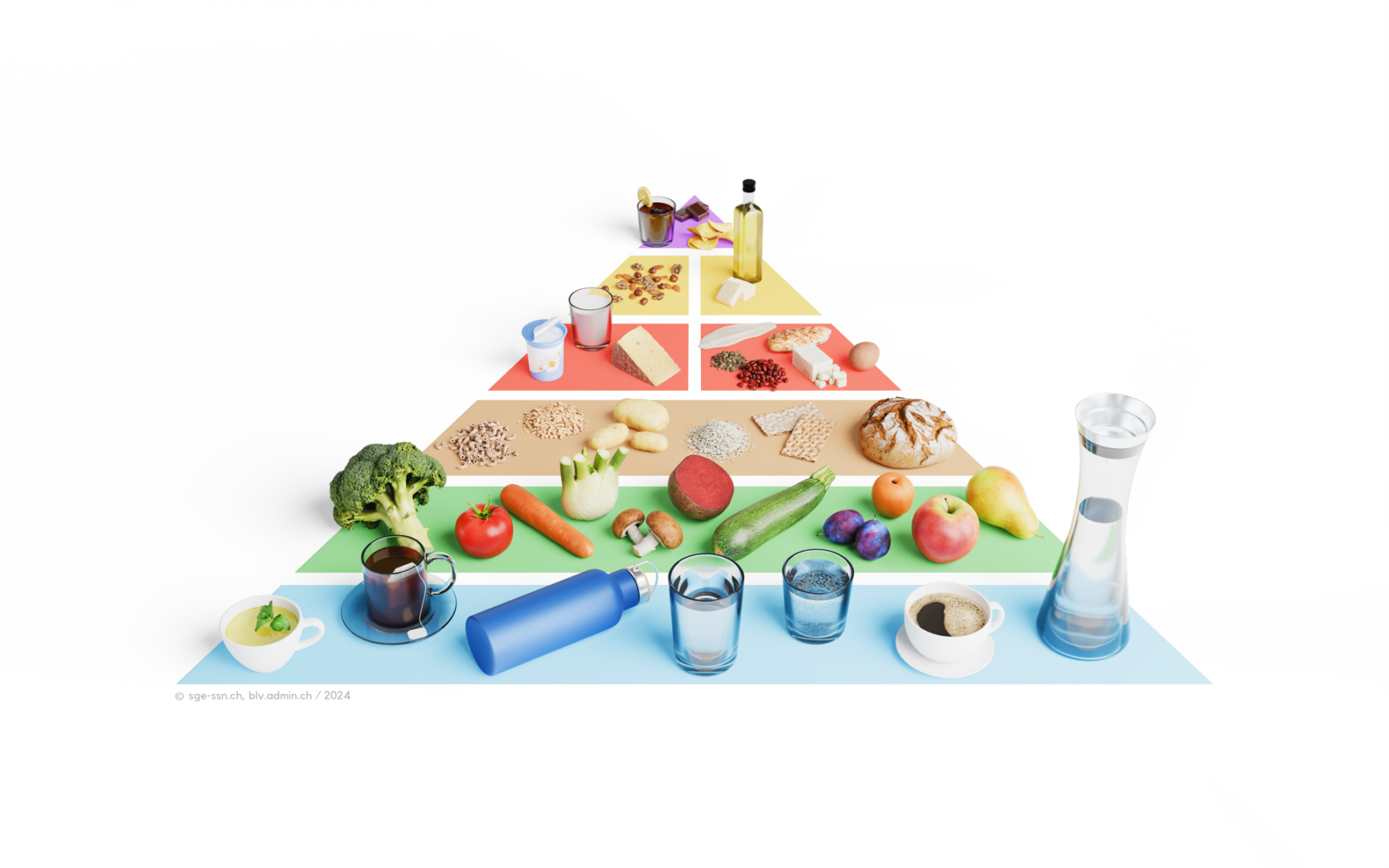 La piramide alimentare della Società Svizzera di Nutrizione (SSN) è stata aggiornata nel 2024.